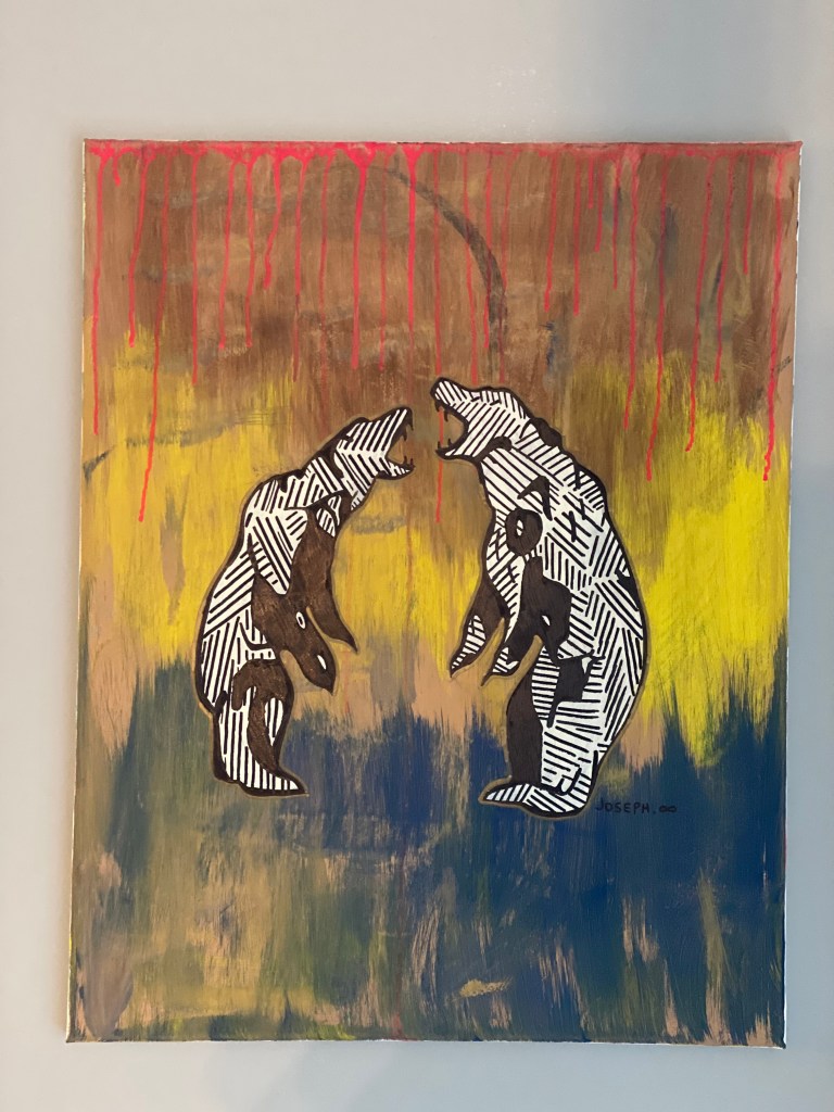 Visual: “This painting is by my husband, Joseph LaPlante, and it’s called ‘Alpha Bear’.