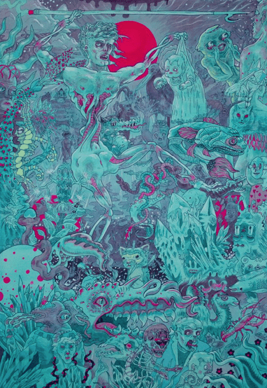 We have had the pleasure of working with Kerry on a number of projects and I wanted to take a moment to highlight his incredible watercolour and ink illustrations. There is always so much to look at in Kerry’s pieces – every character he creates has its own personality and inner world. I love this piece.