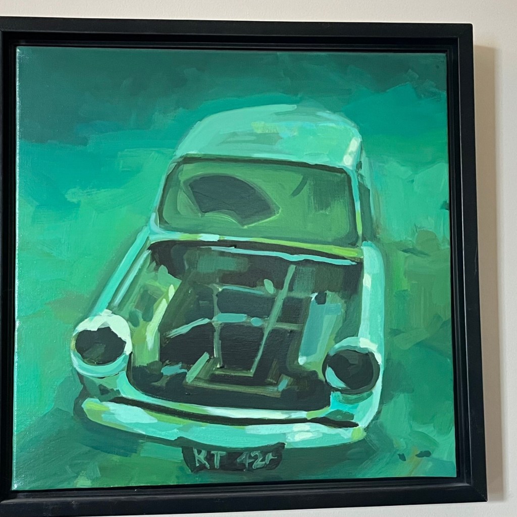 I’m going to try to tie some visuals, some music I love and my new single all together into one semi-neat package. I’m very lucky I have a painting by one of my favourite artists hanging in my living room. “Ghost Passenger” was painted by my friend Shelley Mansel for a show called “Relics” she was putting on for a local gallery back in 2011. Each painting was an underwater scene featuring objects that don’t belong there; a rubber tire, an abandoned net, etc. Around that time, I had just “discovered” Neko Case (late to the party, obviously) and was obsessed with her 2006 album Fox Confessor Brings the Flood, and the song “Star Witness” in particular. The first line of the song is “My true love drowned in a dirty old pan of oil that did run from the block/Of a Falcon sedan 1969”. Whenever I would hear the words “drowning” and sedan”, it would conjure up the image of the old, rusty car in “Ghost Passenger”, inexplicably under water, with one windshield wiper mark across a mud caked window.