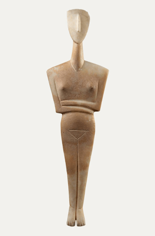 I came across the Idols of the Cyclades in a history of art class years ago and I’ve always been fascinated by them. These small statues, whose purpose is largely unknown, are one of the few remnants of a civilization in the rocky islands between southern Greece and Turkey almost 5,000 years ago. Their discovery in the late 19th century greatly influenced abstract art, and their radical minimalism and geometry feels more futuristic than anything we typically associate with the long-gone past. One of my favourite films, the Kubrick-Spielberg mash-up ‘A.I. Artificial Intelligence’, features a race of hyper advanced robots that take over the earth in its epilogue, and they bear a striking resemblance to these figures, faces reduced to solid shapes without anything to convey emotion, unnaturally long limbs and necks that seem to disregard a functional biology. I find myself inspired by art from different time periods and places in the world, and there are certain aesthetics that seem to recur throughout human history, like it’s something ingrained in us. Perhaps these stone dolls were meant to represent gods with unknown power that reduced their humanity, turning them into abstract shapes, much like our current culture has begun to regard advancement in technology with similar fear and awe.